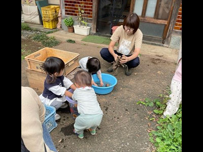 よちよちクラス、はじまります! 離乳食完了から2.5歳目安のよちよち歩き始めた、動きたい!歩きたい!の気持ちいっぱいのこどもたち🧒 のびるねの原っぱや森で遊びましょう! 少し年上ののびるね在園児やおやこぐみのこどもたちと活動することもありますが、よちよちさんのこどもたちのペースで親子で一緒に過ごしましょう♪