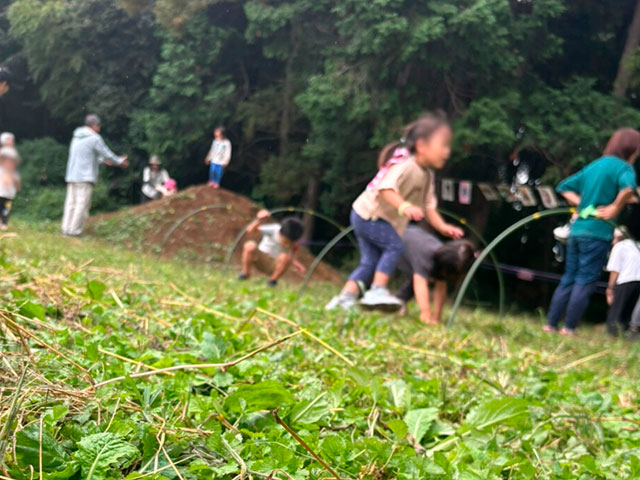 あかちゃんからおじいちゃん、おばあちゃん、のびるねっ子から地域の子どもたちまで原っぱと森全部を使って楽しみました。